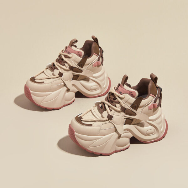 Genuine leather red dragonfly inner height-enhancing dad shoes for women